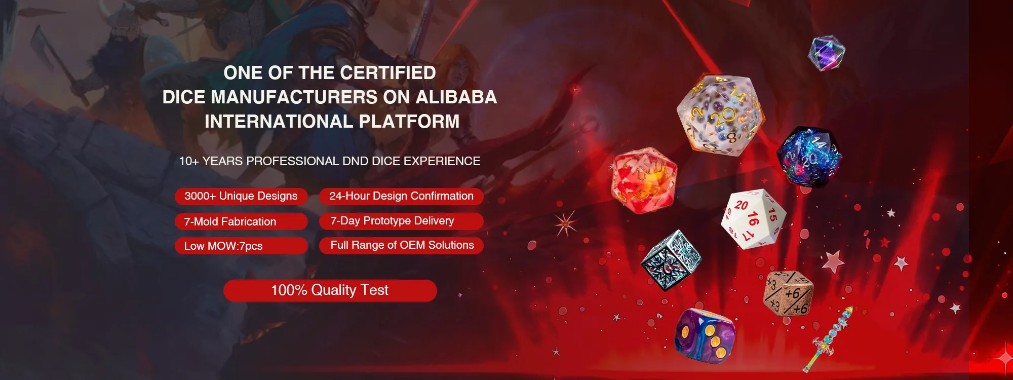 Productos principales:Dados de resina, dados de metal, dados de acrílico, dados de piedra, accesorios de dados