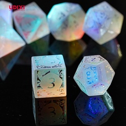 Udixi 다면체 레인보우 크리스탈 스톤 주사위 RPG 투명 주사위 세트 던전과 용